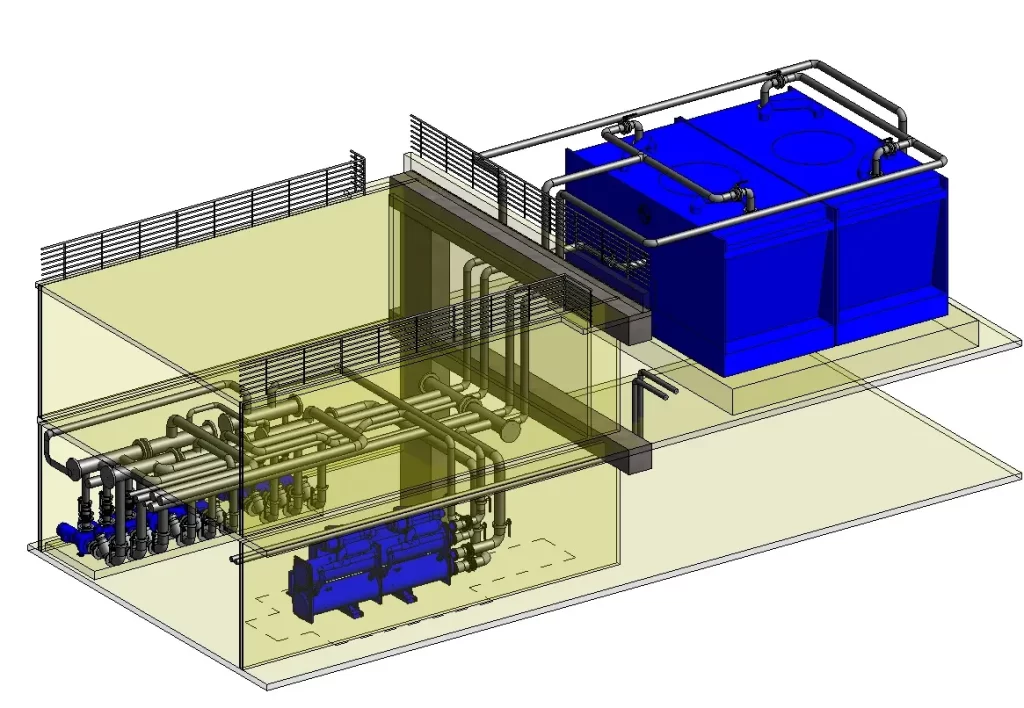 Metodología BIM para el diseño y desarrollo de proyectos de climatización, calefacción, ventilación, eficiencia energética y climatización industrial, ofreciendo una óptima integración con la arquitectura y demás especialidades, optimizando así la gestión e información del proyecto, generando ahorros sustantivos en la etapa de construcción y montaje.